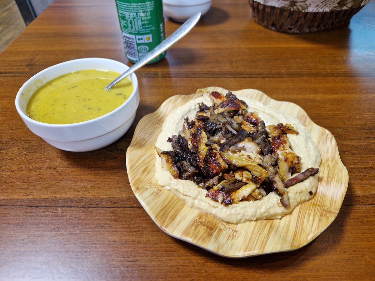 Amazing! So fresh, swift service and delicious! Hummus and bread great sharing dish (look at the size of the bread!), and the shwarma was superb. Add in a really friendly vibe and it's all good. Really recommend this place. Good value. Oh, I forgot to mention the free lentil soup as you sit down too!